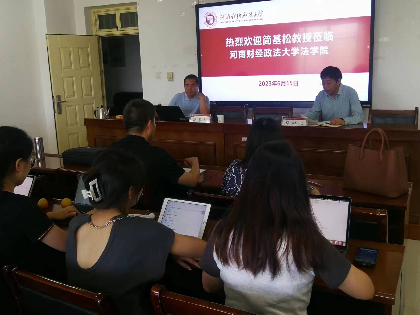 2023年6月15日下午,应太阳成集团tyc122ccvip邀请,中南财经政法大学法律硕士教育中心主任、教授、博士生导师简基松教授作题为《涉外经营中的经济制裁问题》的学术讲座。太阳成集团tyc122ccvip师生50余人参加本次讲座,讲座由太阳成集团tyc122ccvip副经理陈鹏飞教授主持。