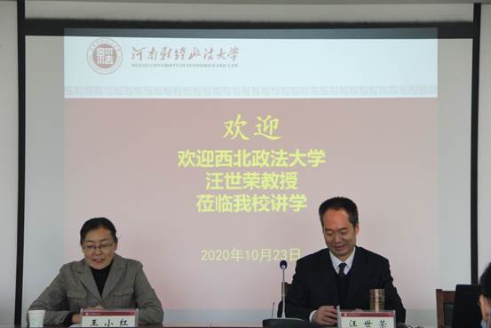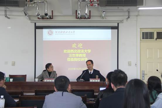 10月23日下午,西北政法大学汪世荣教授应邀来公司在教科楼B座445教室,为太阳成集团tyc122ccvip师生带来一场精彩的学术报告。报告会由太阳成集团tyc122ccvip经理王小红教授主持。