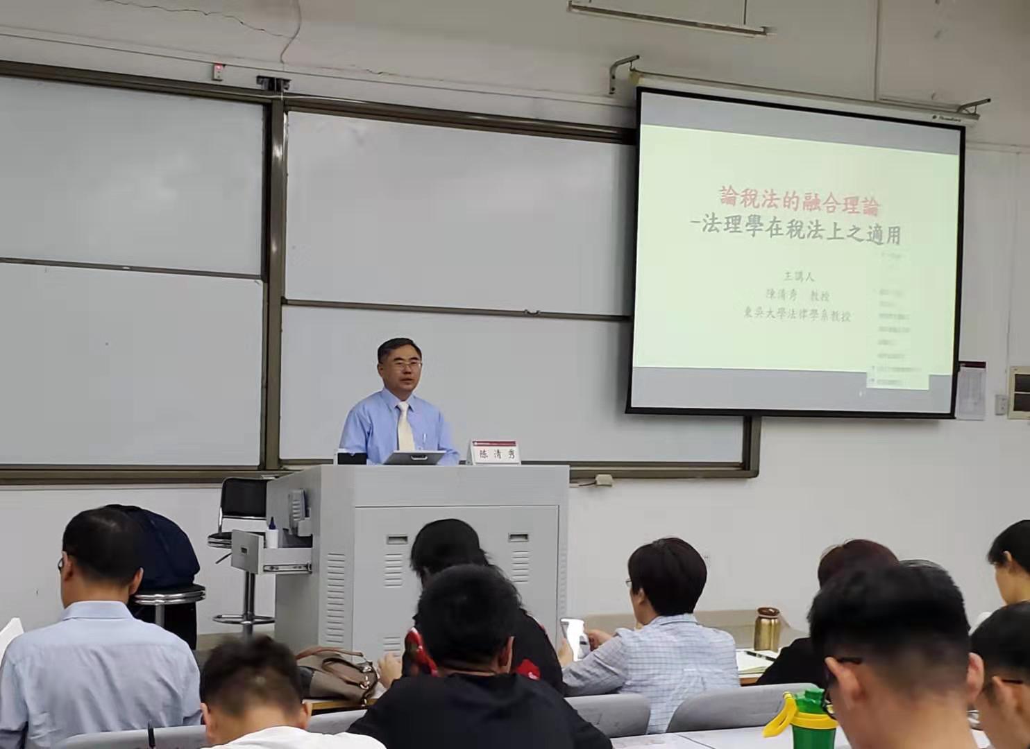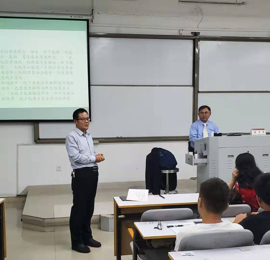 2019年9月26日(星期四)晚7:00,中国台湾东吴大学法律系教授、中国台湾地区“教育部”法规委员会委员、中国台湾地区“财政部”部法规委员会委员、中国台湾地区“台湾地区行政管理机构办公场所”劳工委员会诉愿审议委员会委员陈清秀教授在公司举行了以“论税法的融合理论—法理学在税法上的适用”为主题的学术讲座。本次讲座由太阳成集团tyc122ccvip副经理冉富强教授主持。